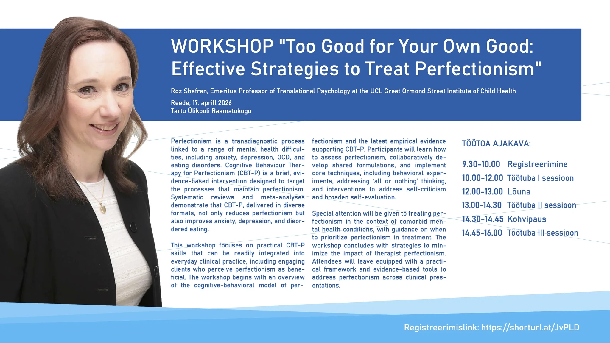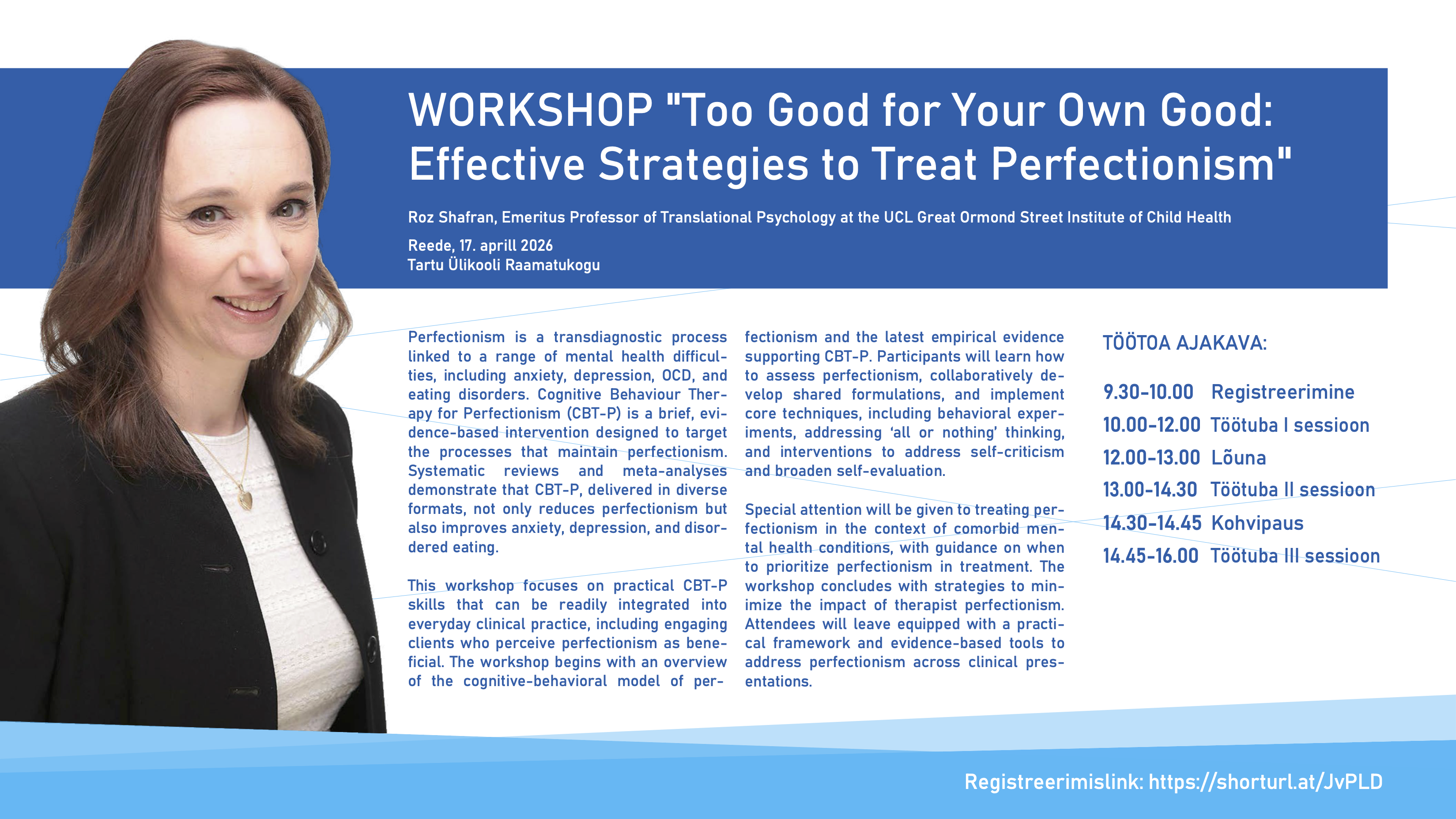 | 14.15-14.45 | "Emotsionaalsete häirete transdiagnostiline ravi" | Merlin Kreitsberg |